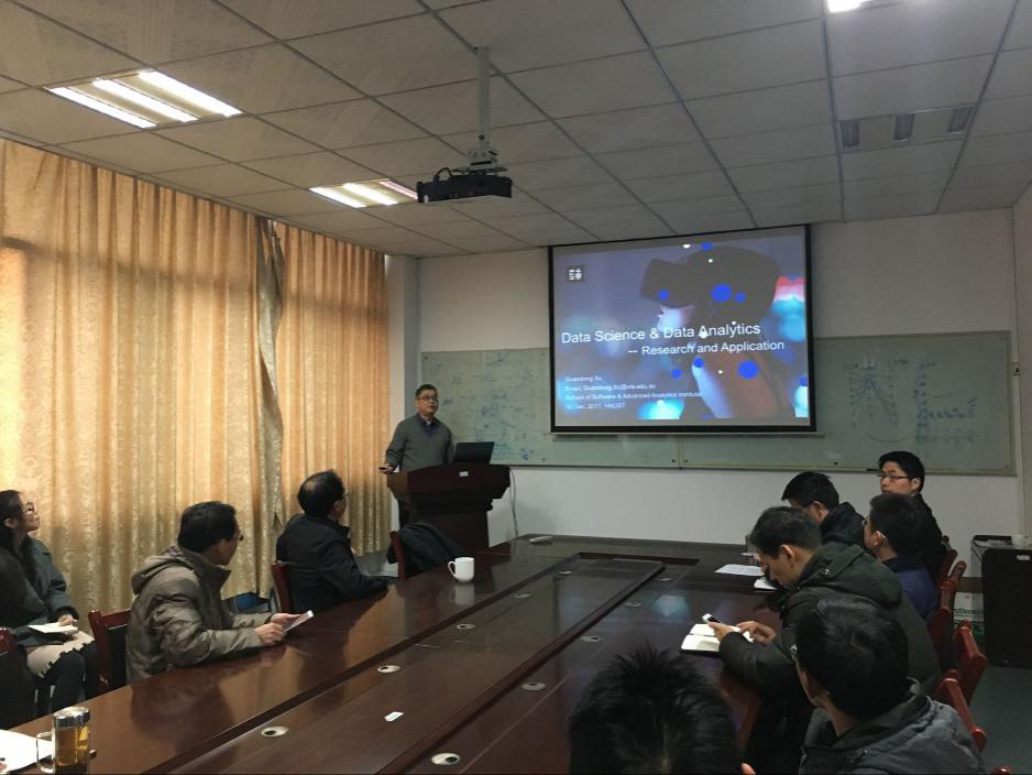 2017年12月30日(星期六)上午9:30-11:30,悉尼科技大学数据分析研究院博士生导师、数据分析专业研究生教育部主任徐贯东教授在公司指导交流并作了题为“数据科学与数据分析的研究发展及其应用”学术报告。本次报告会由计算机科学与技术系主任曹步清副教授主持。威廉williamhill体育经理刘建勋教授、物理与电子科学学院经理王俊年教授、商学院及公司部分师生参加了此次报告会。