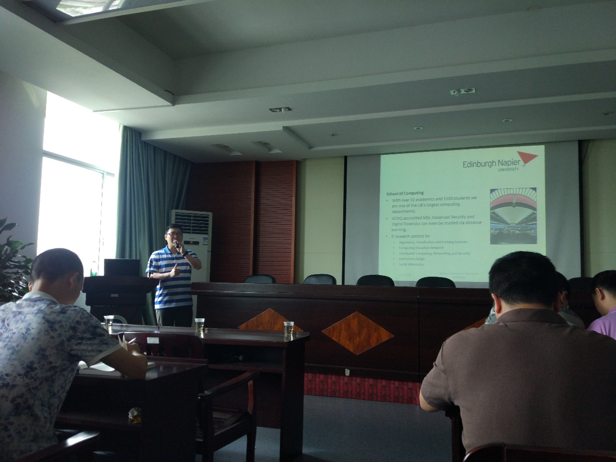 2018年6月22日(星期五)上午10:00,应学院邀请,英国爱丁堡龙比亚大学博士生导师谭志远博士在威廉williamhill体育逸夫楼201会议室做了一场题为 “Network Security: Data Analysis Aspects”的精彩学术报告。本次报告由学院副经理周栋教授主持,学院部分老师、研究生及本科生参加了报告会。