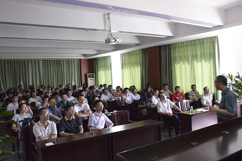李克勤教授首先分析了大规模异构超算系统的优势和带来的挑战,异构众核并行结构因其高性能、高能效、低成本的优势,成为当今和未来超级计算机发展的重要趋势。而后,李克勤教授着重介绍了湖南大学在激光聚变数值模拟应用软件和大规模CPU+GPU/MIC异构并行计算系统之间,在数据剖分理论和方法、异构数据通讯和负载平衡等许多方面进行的全方位的理论和技术研究,并向在座师生分享了所取得的成果。