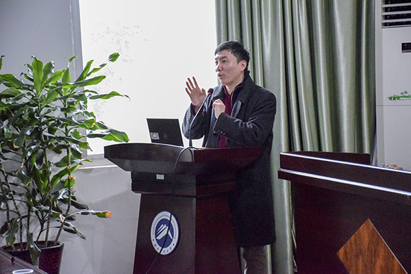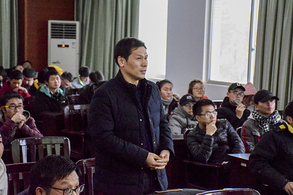 而后,袁浚菘就日本、西方国家丰富的肢体语言强调了肢体语言在生活中的重要性。他介绍到,人的骨架被粗略序列化成14个关节点来识别行为,人们因此可以很好地解决生活中的实际问题。紧接着,他播放了人与智能机器人交互的视频,简述了正在研发中的各种机器人的概况,如陪伴机器人、教育机器人、产业机器人等。袁浚菘表示,机器人产业对当代大学毕业生既是机遇也是挑战。最后,他总结道:“沟通是智能非常重要的方面,但人们对智能的理解还远远不够。”
