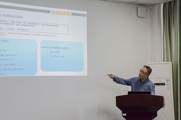 首先,由杨波教授带来题为“区块链技术及其应用”的学术报告。报告前,杨波对公司的邀请表示感谢,并希望此次学术报告能对在座师生有所益处。随后,杨波通过电子现金详细阐述了区域链与比特币的关系,并生动形象的介绍了区块链技术:指出区块链是分布式数据存储、点对点传输、共识机制等技术的集成。通过对区块链的建立过程、需要解决的问题、区块链的特点及应用的描述,杨波强调了区域链技术在未来社会发展中的重要性。他将复杂的概念介绍简单化,使得区块链技术通俗易懂,也使得在座师生受益匪浅。