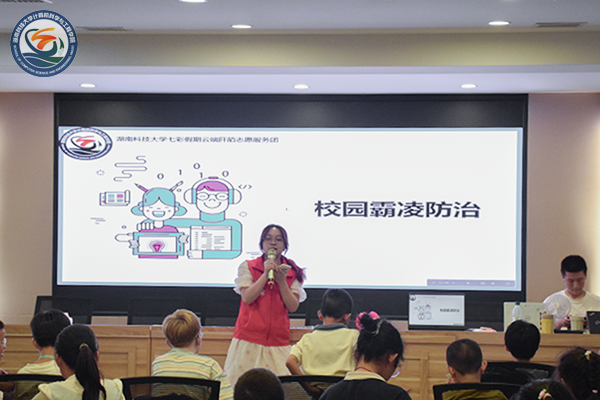 ▲志愿者王宣雅讲授校园霸凌防治主题课